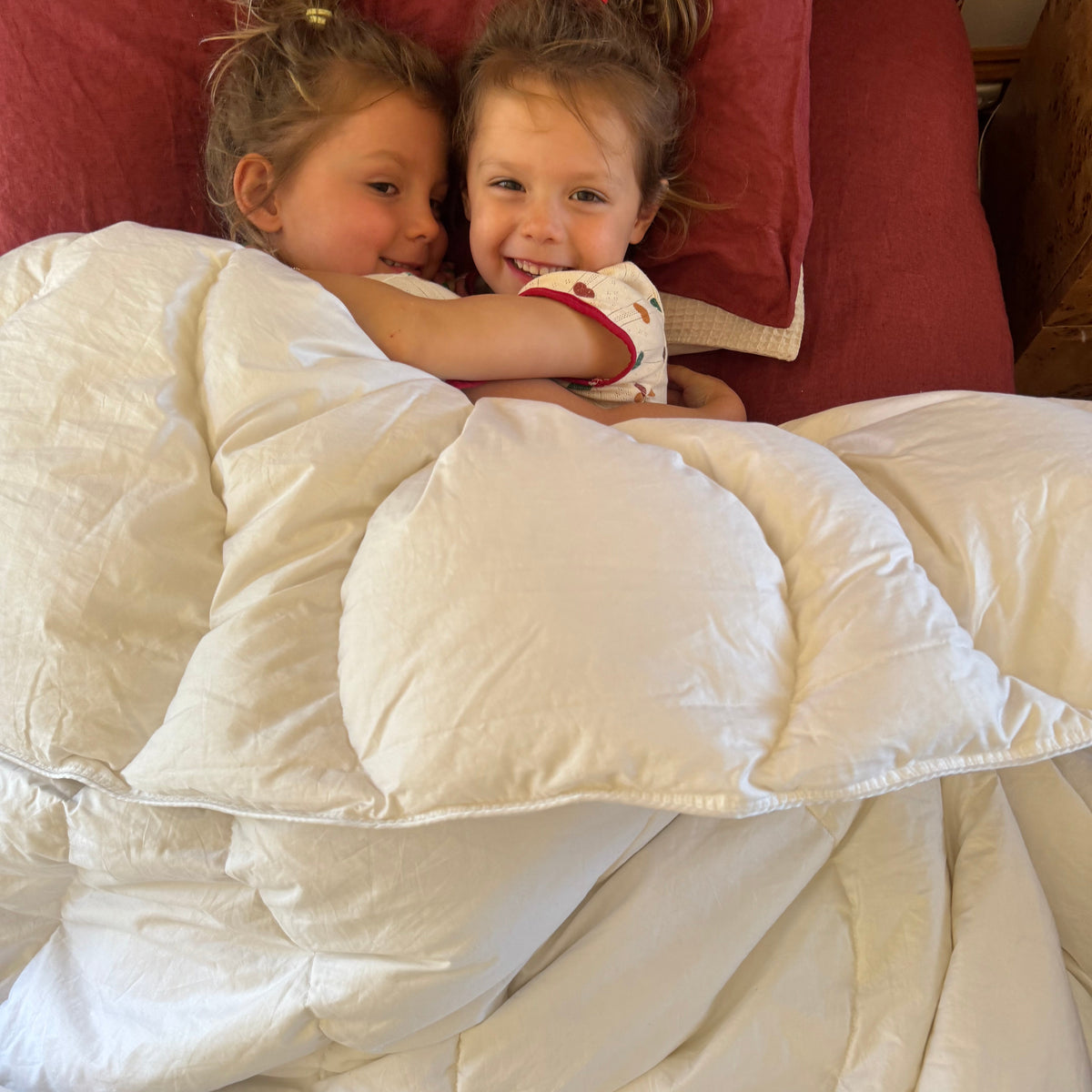 Bonny’s All Rounder is our top pick for all-season comfort. Made with 90% ethically sourced duck down and 10% feather, it’s super breathable, perfectly fluffy and just the right weight for year-round use. The wave stitching keeps the down evenly spread—no clumping—and it’s OEKO-TEX and RDS certified, so you can feel good about what’s on their bed.
